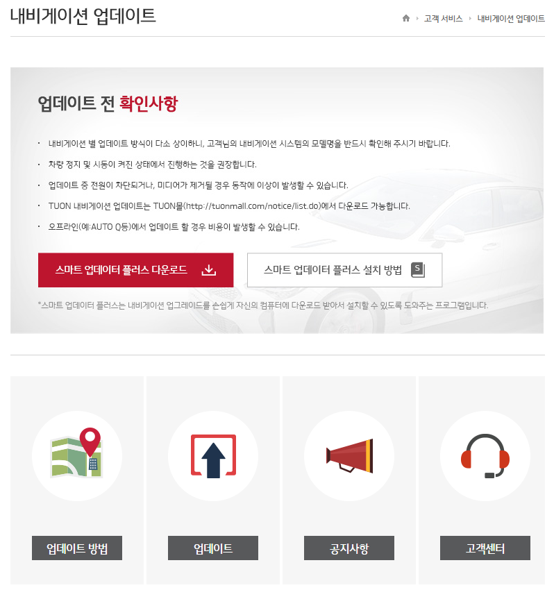 기아 네비게이션 업데이트 프로그램 설치 페이지