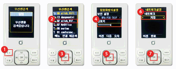 * olleh_WiFi_yyyy로 시작되는 무선랜명을 선택하면 됩니다. -
