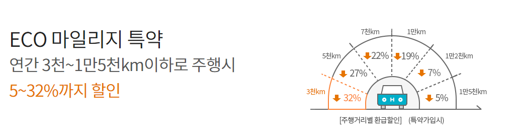 - 5%~32%할인 (하이카서비스등 일부 특약 보험료를 제외한 전담보 기준)