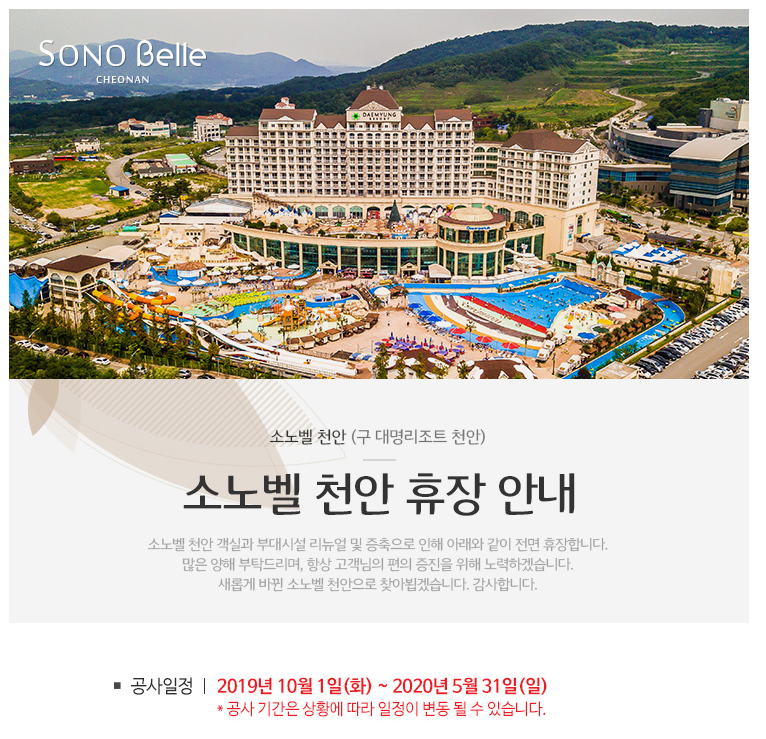 고객 여러분들께 환상적인 즐거움과 행복하고 편안한 휴식을 드리기 위해 소노벨 천안이 함께 하겠습니다.