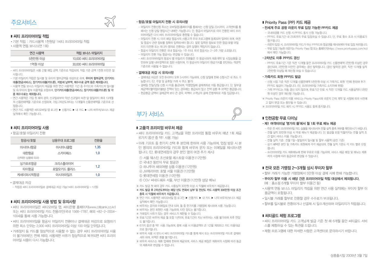 - 주문 전 씨티 프리미어마일 카드 실물을 제시하시어 전월 실적 충족 여부를 확인하시기 바랍니다.