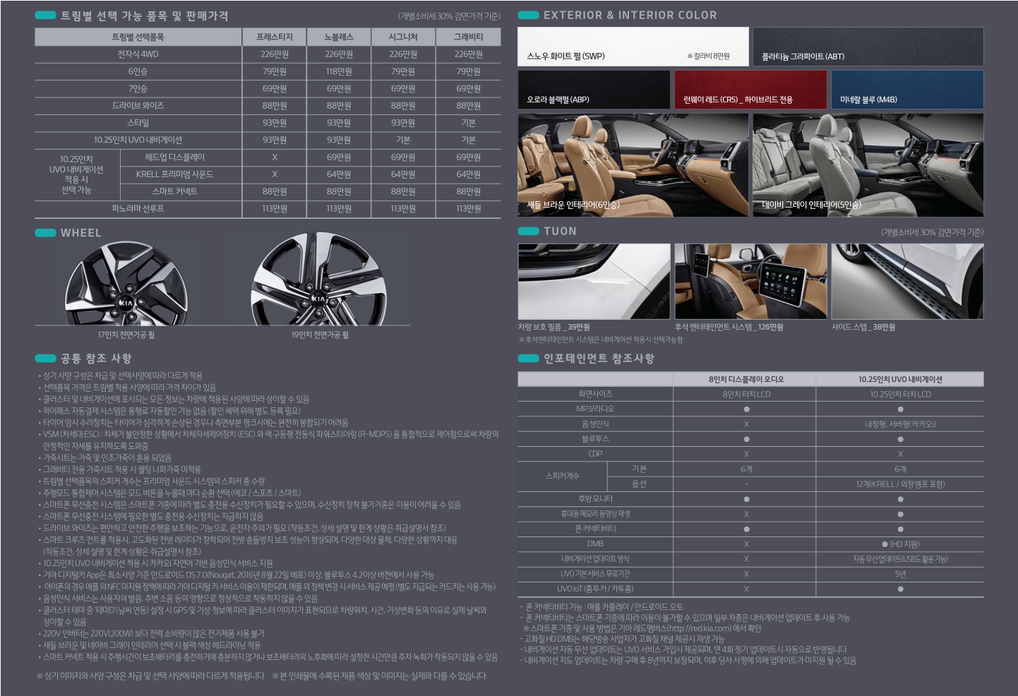 ■ 편의 : 리모트 360도 뷰(내 차 주변 영상), 기아 페이(차량내 간편 결제), 운전석 자동쾌적 제어, 외부공기 유입방지 제어, 2열 세이프티 파워윈도우