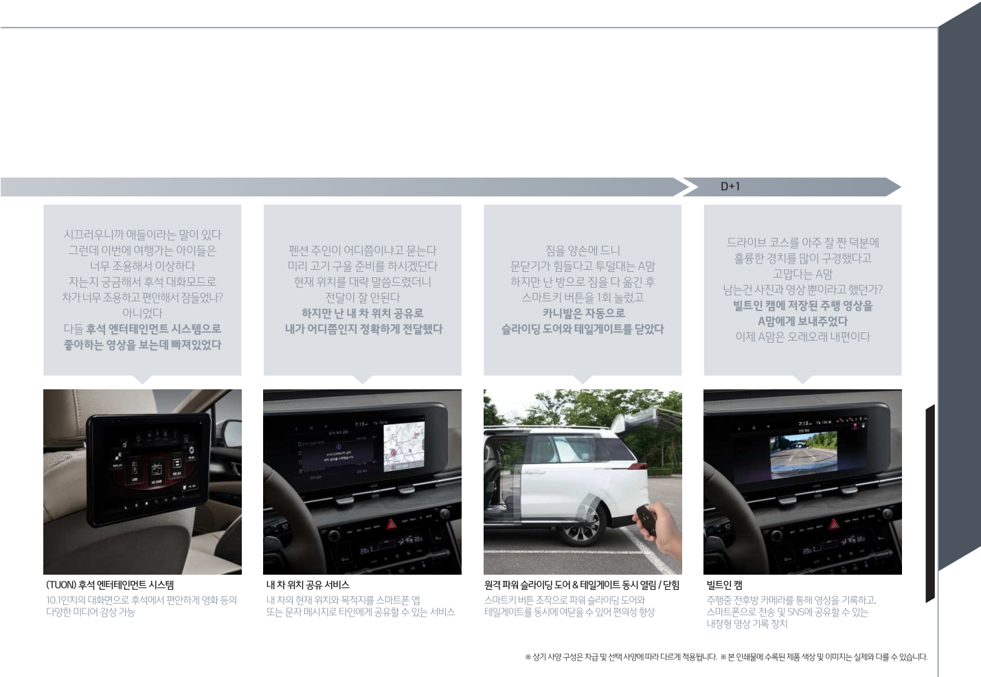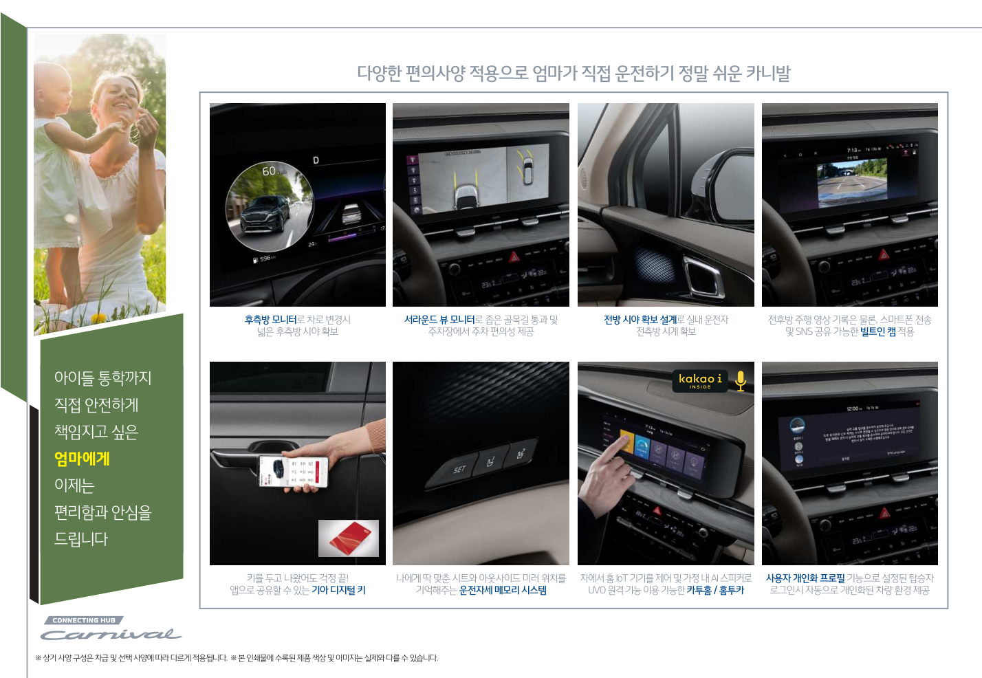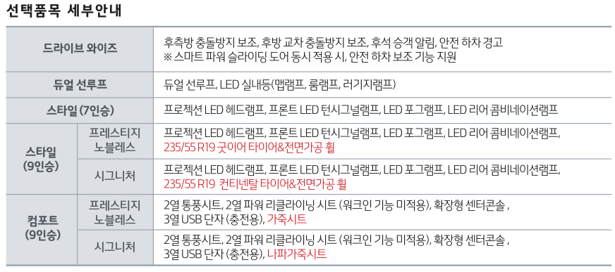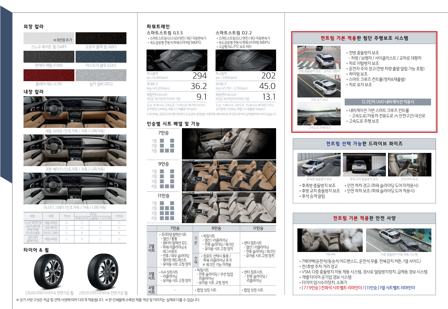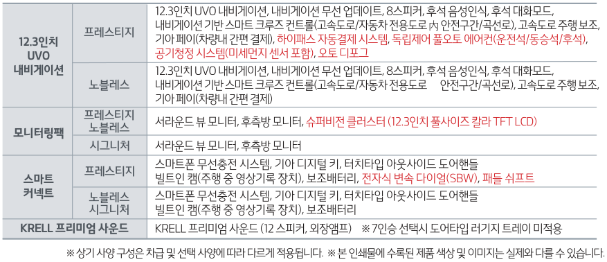 ※ 상기 사양 구성은 차급 및 선택 사양에 따라 다르게 적용됩니다. ※ 본 인쇄물에 수록된 제품 색상 및 이미지는 실제와 다를 수 있습니다.