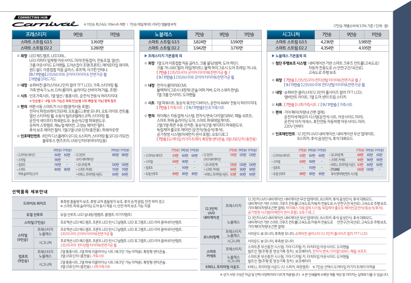 (7인승 개별소비세 3.5% 기준 / 단위 : 원)