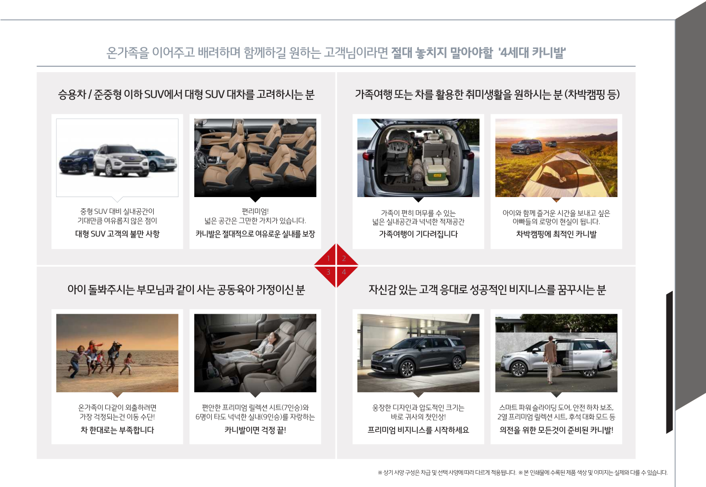 ※ 인승별 2 ~ 4열 시트 기능은 좌측 [인승별 시트 배열 및 기능] 항목 참조