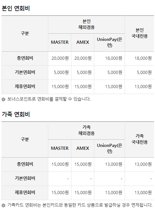 - 가족카드 이용금액 및 횟수는 본인카드와 별도 산정