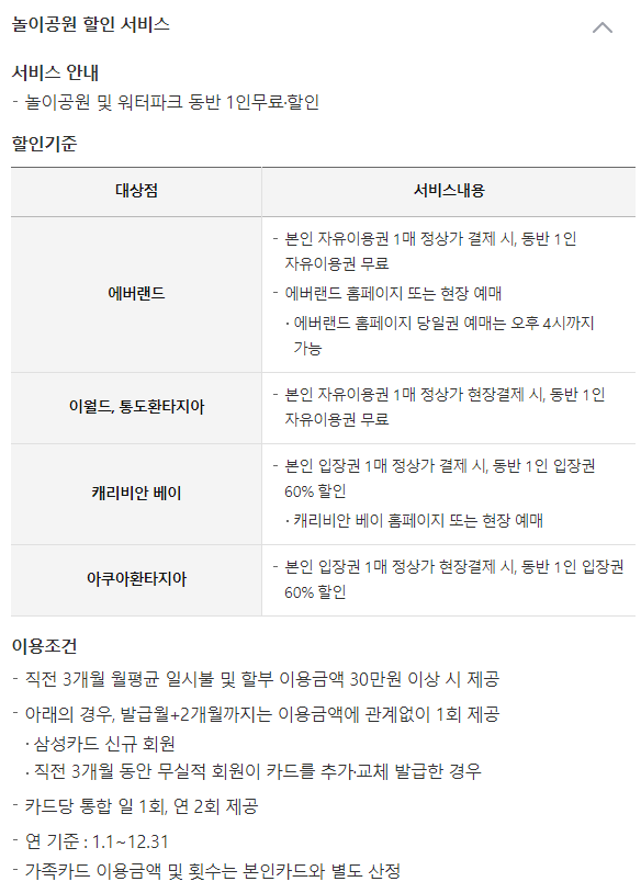 - 놀이공원 및 워터파크 동반 1인무료·할인