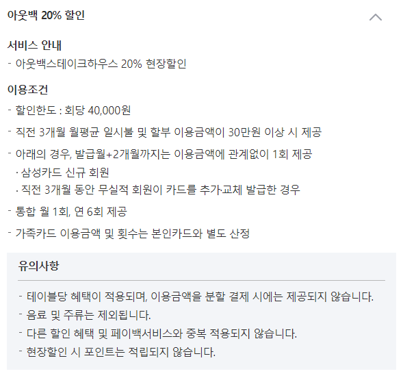- 테이블당 혜택이 적용되며, 이용금액을 분할 결제 시에는 제공되지 않습니다.