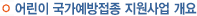 - 「어린이 국가예방접종 지원사업」은 감염병 예방을 위해 꼭 필요한 예방접종 서비스를 가까운 지정