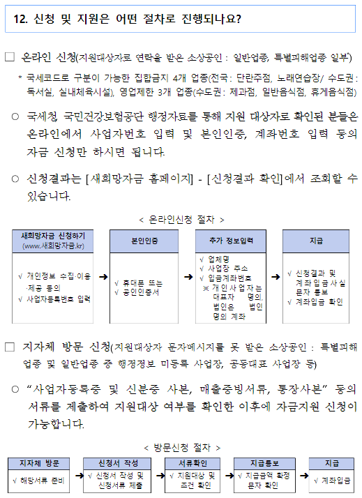 □ 새희망자금은 특별피해업종(①집합금지업종,②영업제한업종) 및③일반업종의 각 요건을 충족하면 지원대상에 해당합니다.