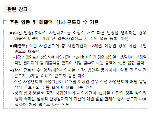 * 소기업 매출규모 기준(예) : 숙박‧음식점업 10억원 이하, 도‧소매업 50억원 이하 등