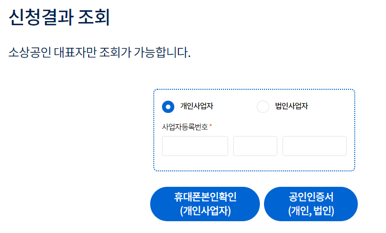 - 원활한 신청을 위해 24일(목)에는 사업자등록 끝자리 숫자가 짝수인 소상공인, 25일(금)에는 홀수인 소상공인만 신청이 가능하고 26일(토) 부터는 모두 신청할 수 있습니다.