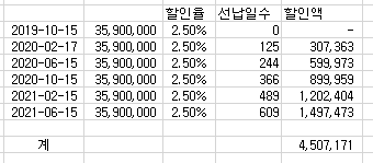 - 할인 이율 기간(보통 최초입주시작일까지임)
