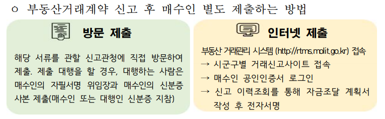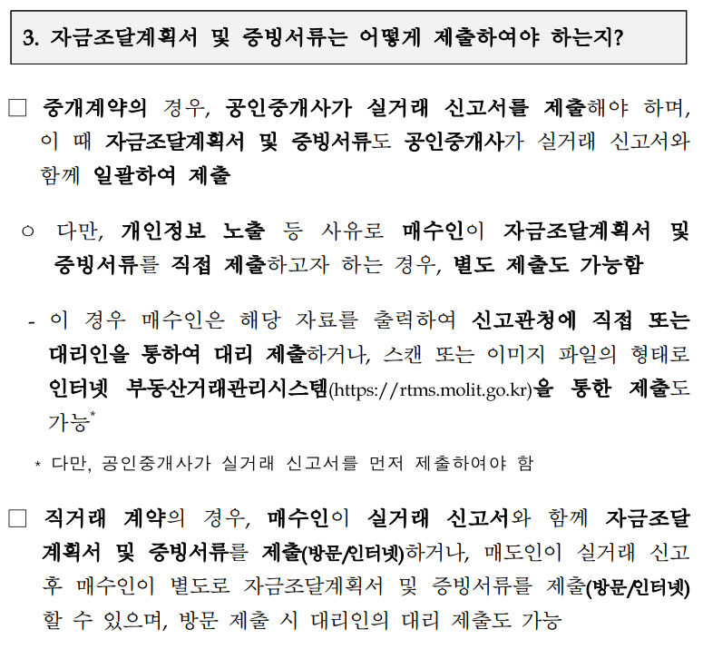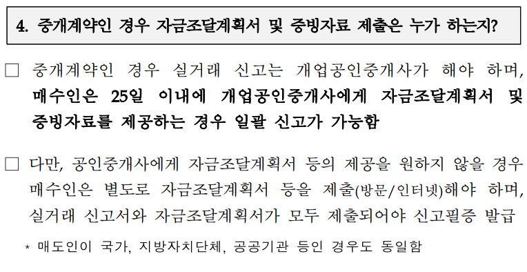 - 매도인 : 신고관청에 신고서와 자금조달계획서 제출, 이 경우 매수인은 자금