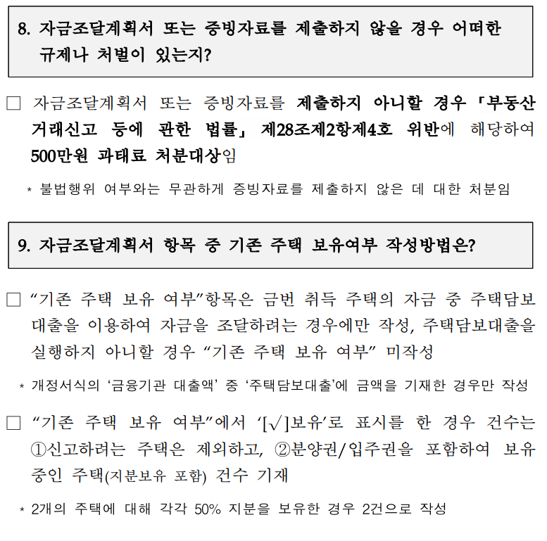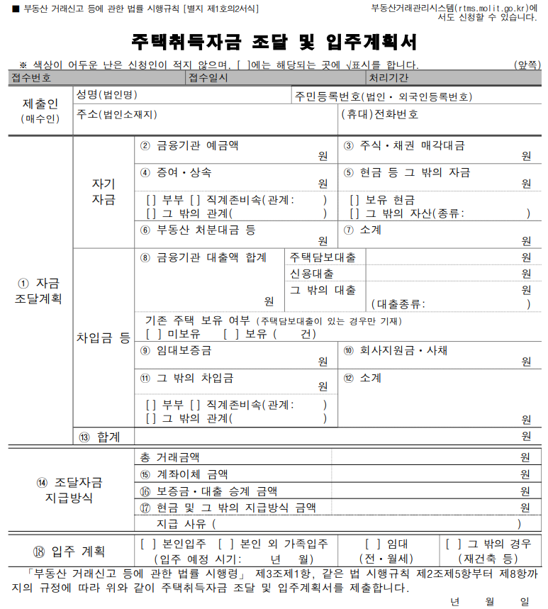 ㅇ「부동산 거래신고 등에 관한 법률 시행규칙」 개정에 따라 자금조달