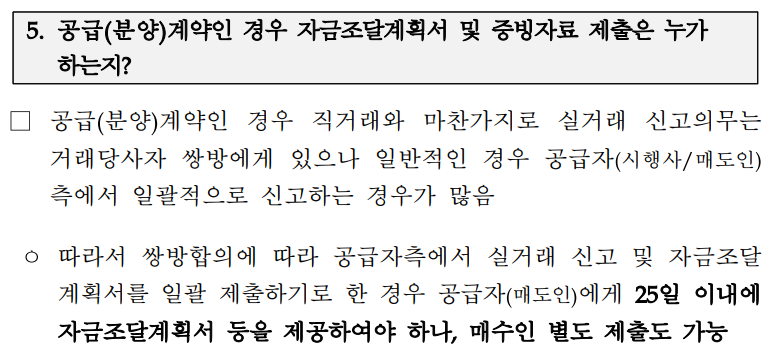 조달계획서를 작성하여 25일 이내 매도인에게 제공 또는 매수인 별도