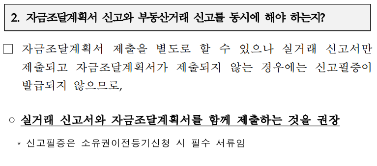 * 자금조달계획서를 매수인이 별도 제출하기로 한 경우 신고서만 선제출