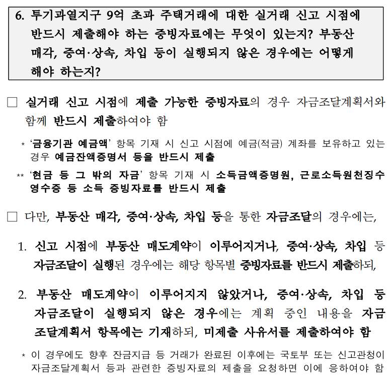 ㅇ (증빙서류 제출대상) 투기과열지구 9억원 초과 주택거래 계약 에만 적용