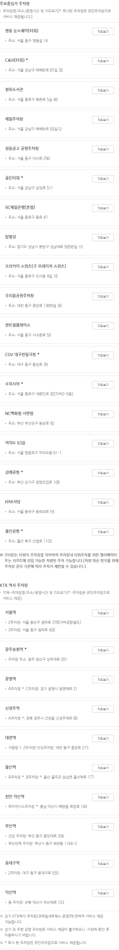 ※상기 KTX역사 주차장(코레일네트웍스 운영)에 한하여 서비스 제공 가능합니다.