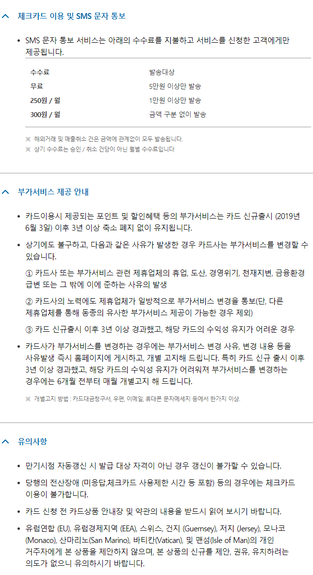 - 할인혜택은 사용금액 인출 후 캐시백 방식으로 주어지며, 캐시백 금액은 은행의 카드전표 매입 후 2~3일(영업일 기준)에 고객님의 연결계좌로 입금됩니다. (원 단위 미만 절사)