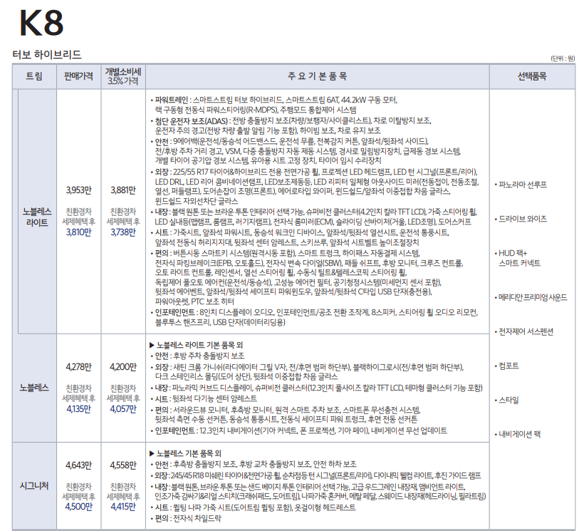 K8 하이브리드 가격표 다운로드