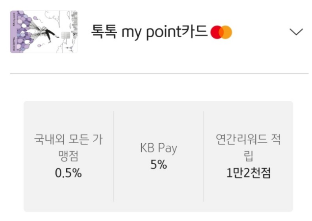 [기타] • KB국민톡톡 my point카드서비스는 대상 가맹점이KB국민카드 업종분류기준, 지정 업종으로 등록된 경우에 한하여 제공됩니다. • 별도 전용 가맹점번호로 승인처리 되는 PG(결제대행)업체 또는 적립서비스가 제공되지 않는 타 간편결제(pay)이용 시 적립 대상에서 제외 될 수 있습니다. • KB국민 톡톡 my point카드는 본인회원기준으로 월간적립한도가 제공되며, 적용 기간은 매월 1일~말일까지(승인시점 기준)입니다. • 이용 순서대로 월간 한도 내 적립이 적용되며 잔여 적립한도는 이월되지 않습니다. • 적립 받은 이용 건을 취소할 경우 취소전표가 실시간으로 접수되지 않아 적립한도가 즉시 복원되지 않을 수 있습니다. • 결제계좌 개설기관의 영업 마감시간(16시) 이후 결제계좌에 입금된 금액에 대해서는 결제계좌 개설 기관의 사정에 따라 당일 출금되지 못하여 연체로 처리될 수 있으므로 유의하시기 바랍니다. 자동이체 업무 마감시간 이후 당사 홈페이지/모바일* 등에서 바로 출금(즉시결제) 또는 가상계좌 입금(송금납부)을 통해 당일 결제가 가능합니다. *세부내용: KB국민카드 홈페이지 > MY KB > 바로 출금 또는 가상계좌 참조 3. 해외서비스 수수료 = (거래미화금액 X 해외서비스 수수료율) X 전신환매도율 * 해당 내용은 해외원화결제서비스(DCC) 수수료가 없는 경우이며, 해외원화 결제서비스(DCC) 이용 시 추가 수수료가 발생할 수 있으니 유의하시기 바랍니다. * 해외원화결제서비스(DCC) 차단 서비스: KB국민카드 홈페이지/모바일앱 > 서비스 > 해외이용서비스 > 해외원화결제차단서비스 |