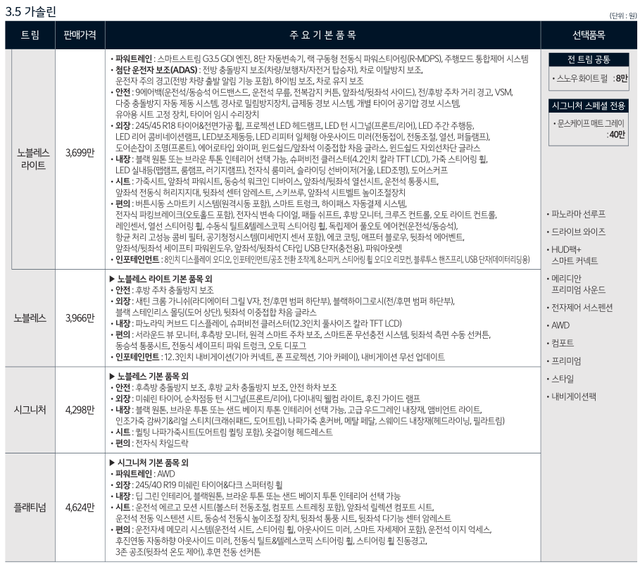 •선택품목 가격은 트림별 적용 사양에 따라 가격 차이가 있음